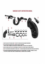 The Man|Cage Chastity Cages are manufactured from high-grade polycarbonate, a very light, durable and hypoallergenic material. The cage consists of three parts which fit perfectly together. The two guidance pins connect the top parts and the oval taper pin connects the rings with the cage. A variety of rings in different sizes and distance pieces will allow you to create the perfect size! The rings have a comfortable fit and are absolutely safe. A metal lock or tie-wrap lock can easily close the cage. The included tie-wrap locks ensure that they will not trigger the alarm of metal detectors at parties, festivals or even airports! As hygiene is very important while wearing a cage, the superior Man|Cage series are equipped with a variety of vents and a urination opening. The cage makes it impossible to get an erection but it will be, after liberation, super intense, just like the freeing orgasm to follow! The Man|Cage Chastity Cage gives the key-holder optimal power over sexual gratification!