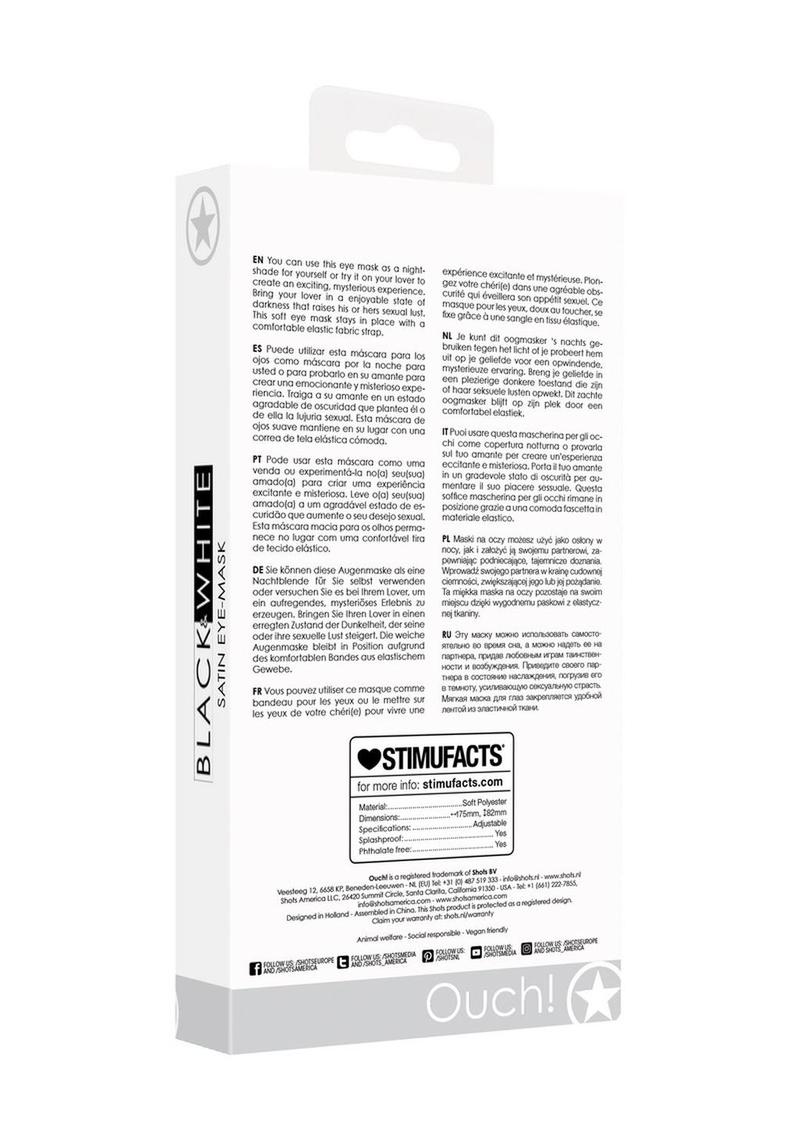 You can use this eye mask as a nightshade for yourself or try it on your lover to create an exciting, mysterious experience. Bring your lover in a enjoyable state of darkness that raises his or hers sexual lust. This soft eye mask stays in place with a comfortable elastic fabric strap.