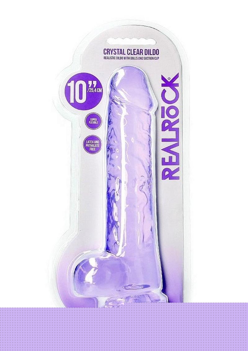 This REALROCK CRYSTAL CLEAR model has been designed with realistic balls for an enhanced lifelike experience. All come with a sturdy suction cup so you can stick it to practically any smooth surface. All are body-safe and non-porous which makes them easy-to-clean and gives them a longer lasting durability. This model with balls stands 28 cm (11b ) tall including the suction cup, has an insertable length of 25,4 cm (10b ) and has a girth of 6 cm (2,4b ).