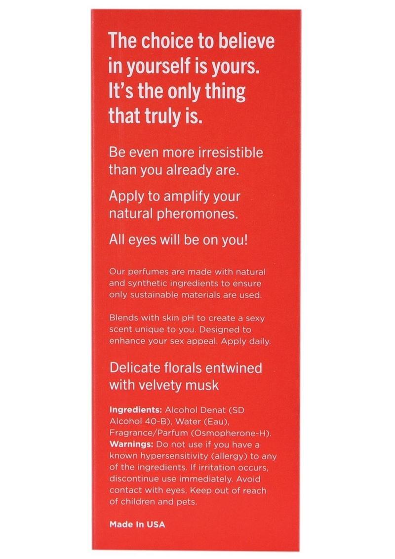 Delicate florals entwined with velvety musk. Top Notes: Natural fresh lemon, sweet bergamot and mandarin. Mid Notes: Natural violet, rose, muguet, pink peppercorn, cardamon, juicy raspberry, pear, crisp apple and pineapple sorbet. Bottom Notes: Sweet amber, sandalwood, musk and natural sandalwood. The choice to believe in yourself is yours. It's the only thing that truly is. Be even more irresistible than you already are. Apply to amplify your natural pheromones. All eyes will be on you! Hold fragrance 5-7 inches away from skin and apply to pulse points. Blends with skin pH to create a sexy scent unique to you. Designed to enhance your sex appeal.