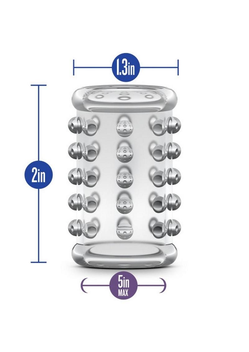 This stretchy enhancement sleeve is a simple way to add a new level of pleasure and sensation to your penis, favorite dildo or vibrator. Just slide the sleeve over your shaft. Stack them for even more pleasure. Buy more so you can mix and match and stack them to create a unique erotic experience every time. Easy to use, and stays in place. Measures 2" Length x 1.4" Width. Comfortably stretches up to 3" Wide. Maximum stretch to 5" Width. Lab tested body safe. Silicone, water based, hybrid lube compatible.