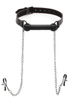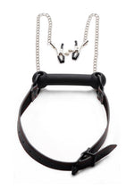 Ideal for training your pony, submissive, or slave, this combination of a bit gag and nipple clamps ensures that your plaything stays quiet, even as you deliver painful pleasure to their delicate nips! Stuff the premium silicone bit into their mouth and secure it with the soft, adjustable, red-stitched straps. The intensity of this devious device is taken up a notch with the addition of two connector chains on the metal rings that hold the gag. Each ends in an alligator nipple clamp, which allows you to adjust the pressure with thumbscrews. Vinyl coated tips make for a comfortable and secure grip. Enjoy every muffled moan and stifled gasp as you tease and torment your pet!